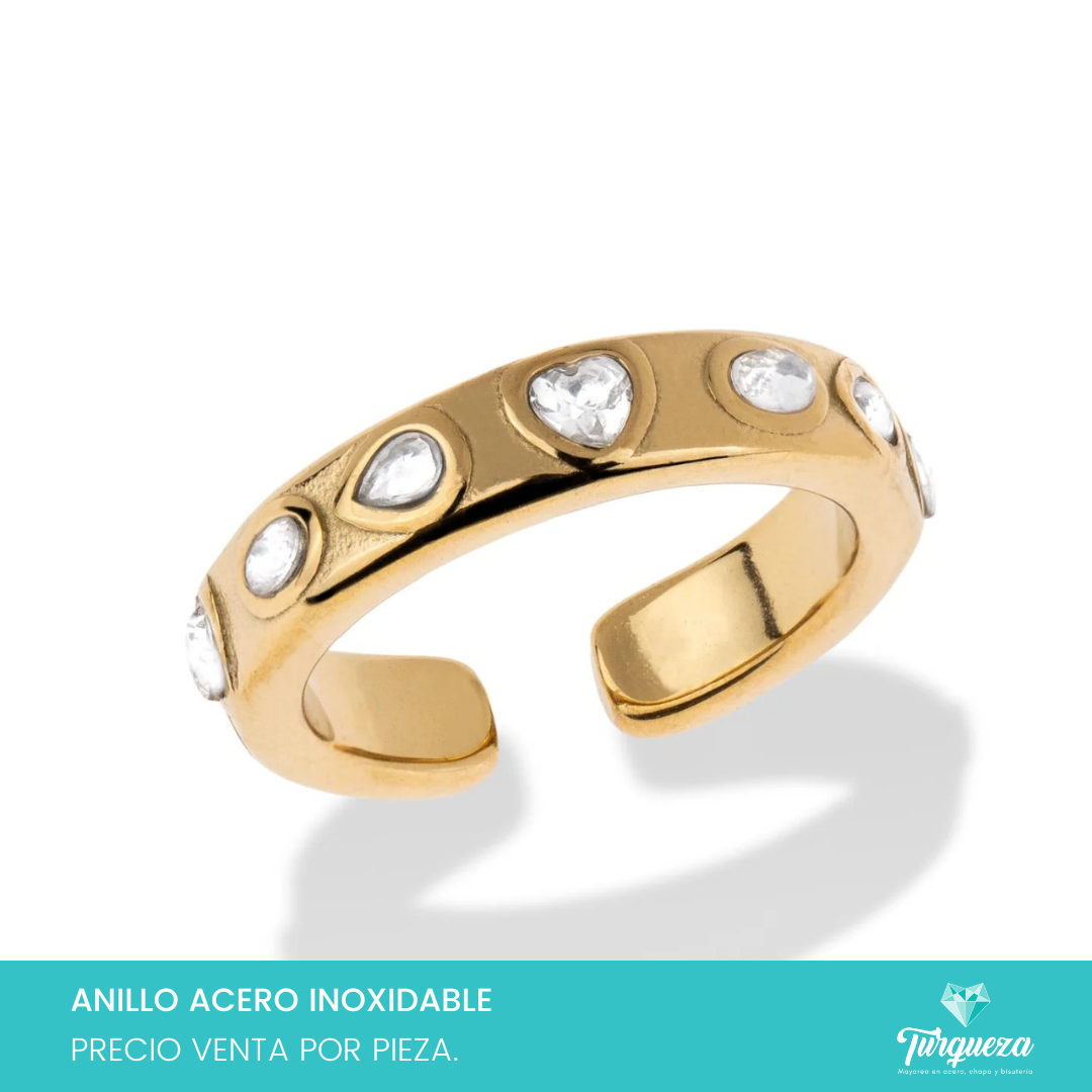 Anillo con Corazon y zirconias Dorado Acero Inoxidable