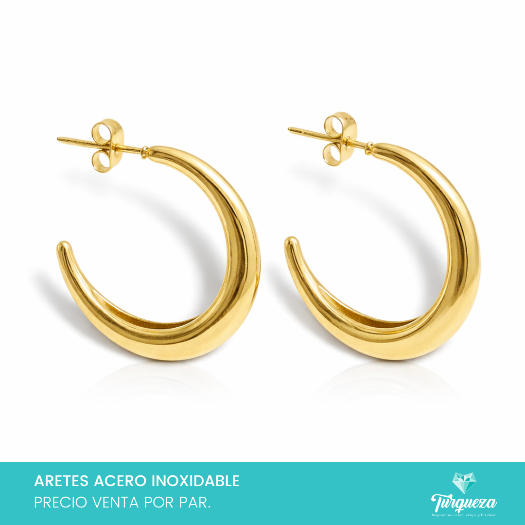 Arete Arracada Media Luna MED Dorado 2.5cm Acero Inoxidable