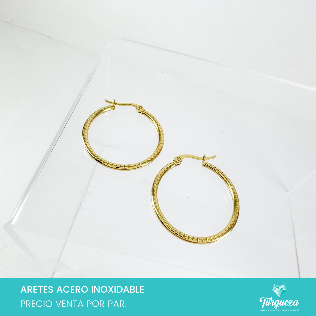 Arete Arracada Rallada Dorado 2.5cm Acero Inoxidable