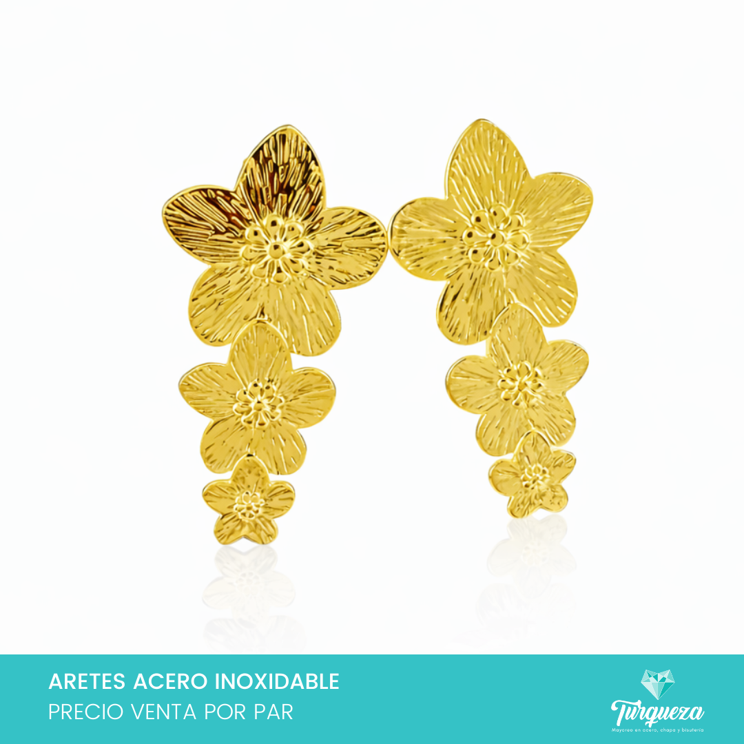 • Load image into Gallery viewer, Arete Flores Dorados 3cm Acero Inoxidable