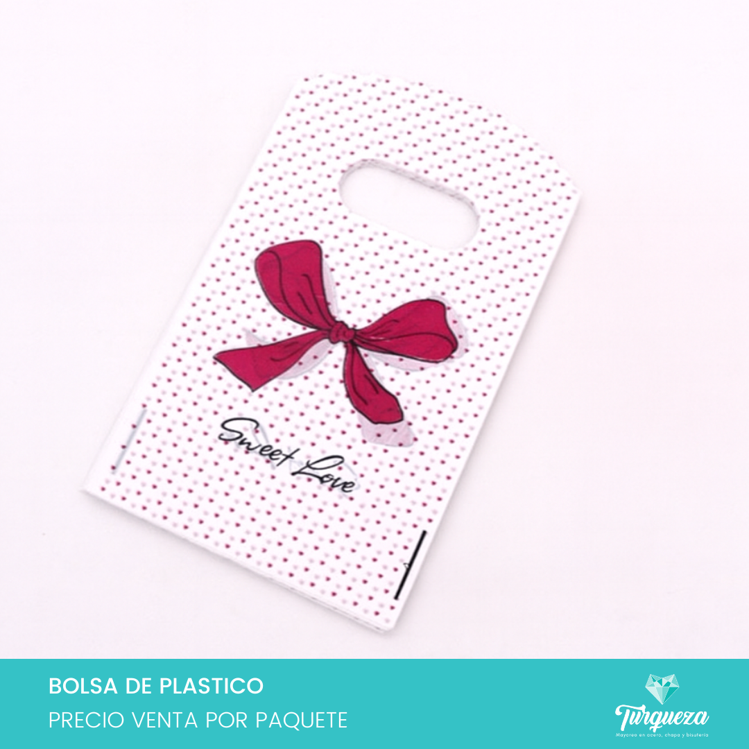 Bolsa de Plástico Moño Rosa Coquette Pequeña  (50pzas 9x15cm)