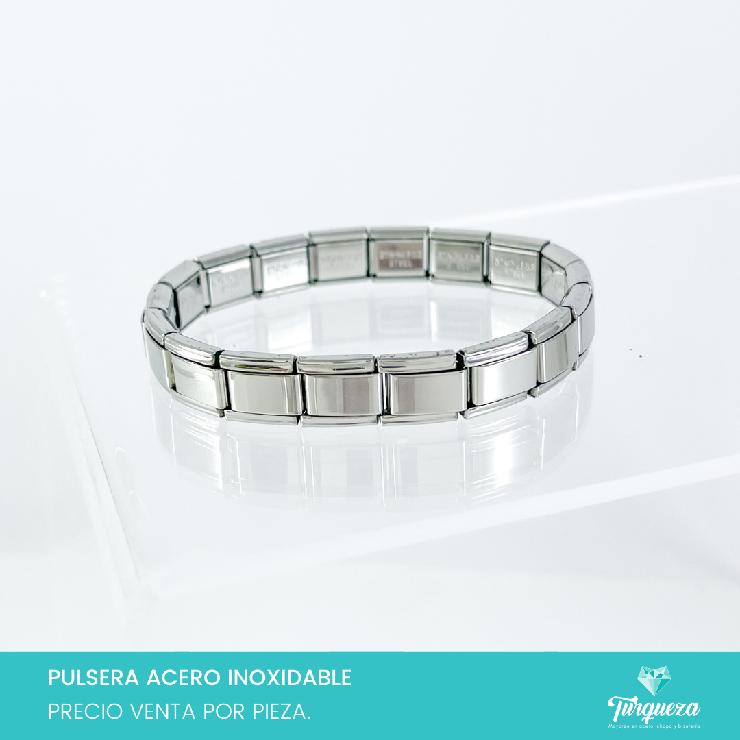 Pulsera Tipo Italiana Plateada (18 charms 8mm x 1cm) Acero Inoxidable
