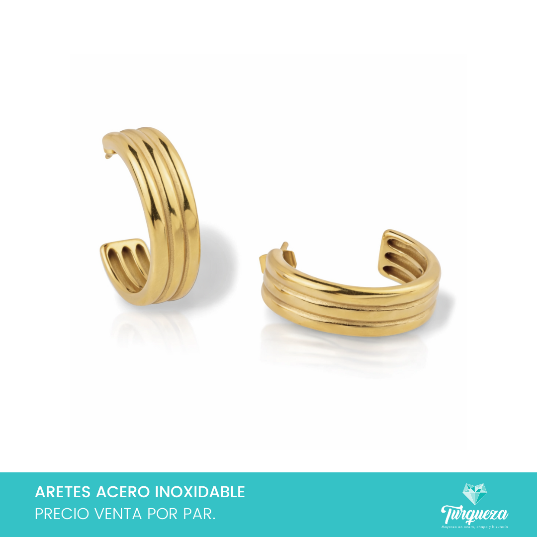 Arete 3 Lineas Dorado (2.5cm) Acero Inoxidable
