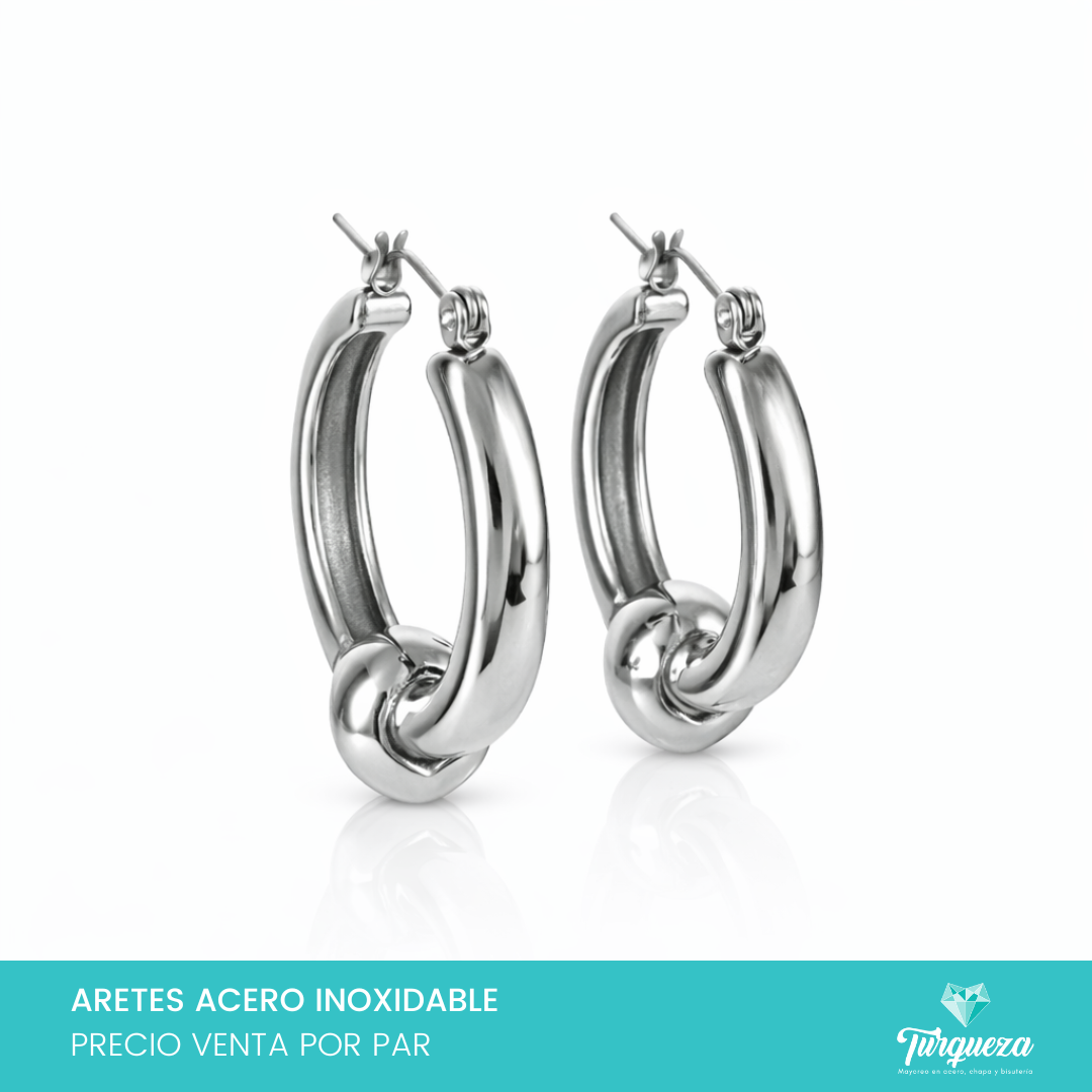Arete Arracada Bolita Plateado 2.5cm Acero Inoxidable