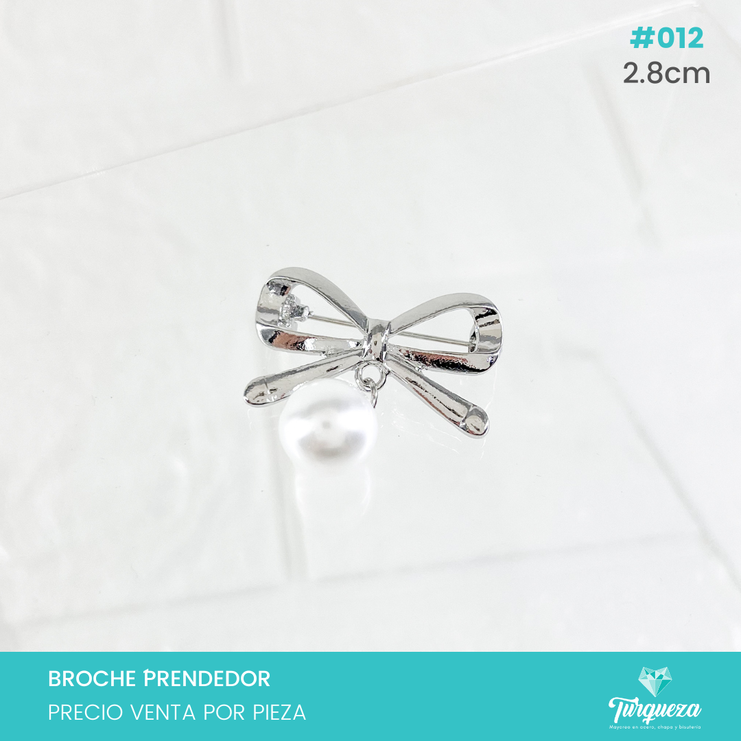 Broche Prendedor Moño Plateado con Perla colgante (2.8cm) #012
