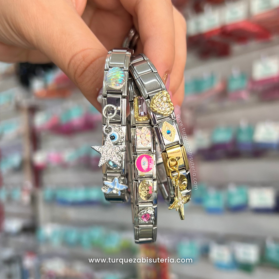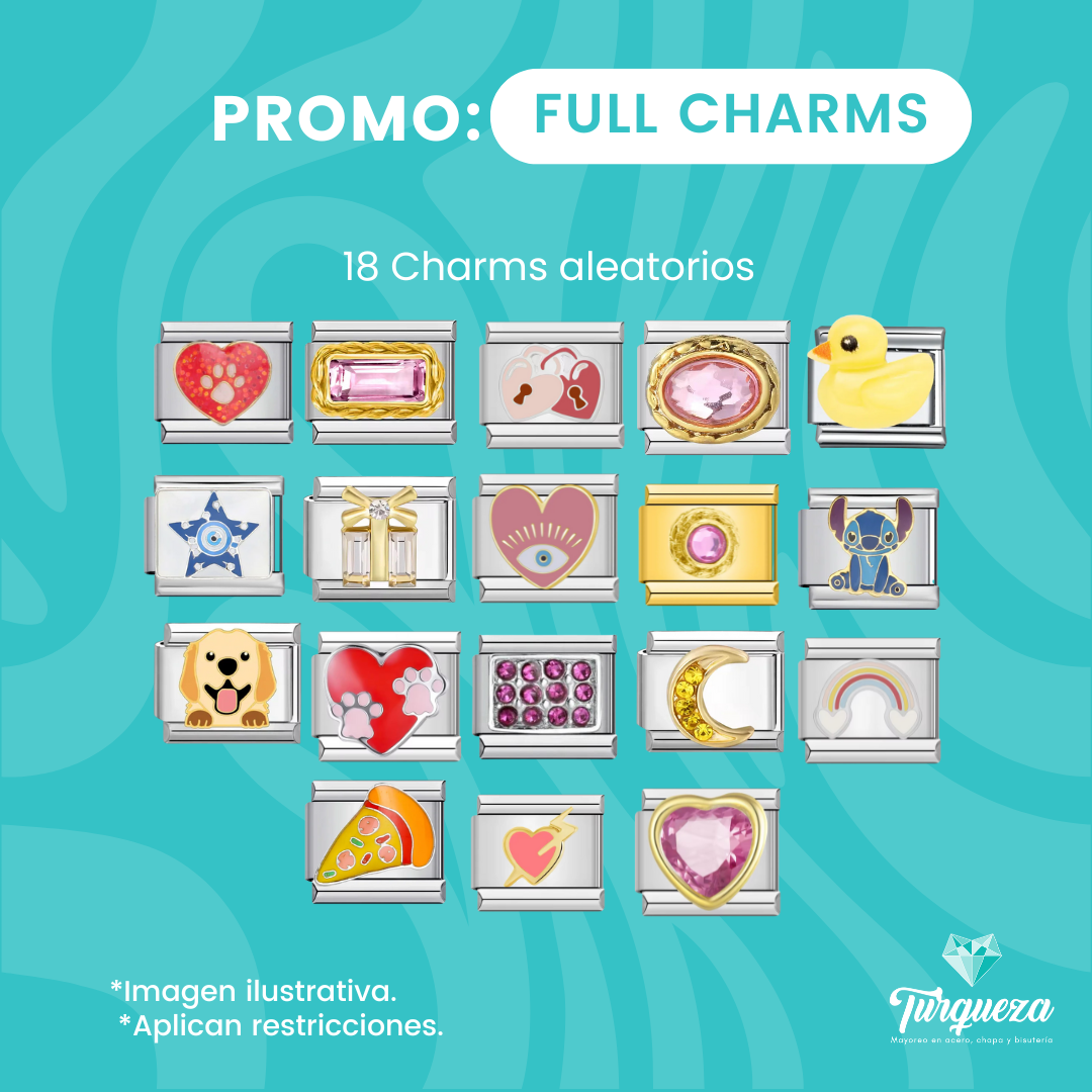 Pulsera Italiana FULL Charms 18 pzas Aleatorios Acero Inoxidable